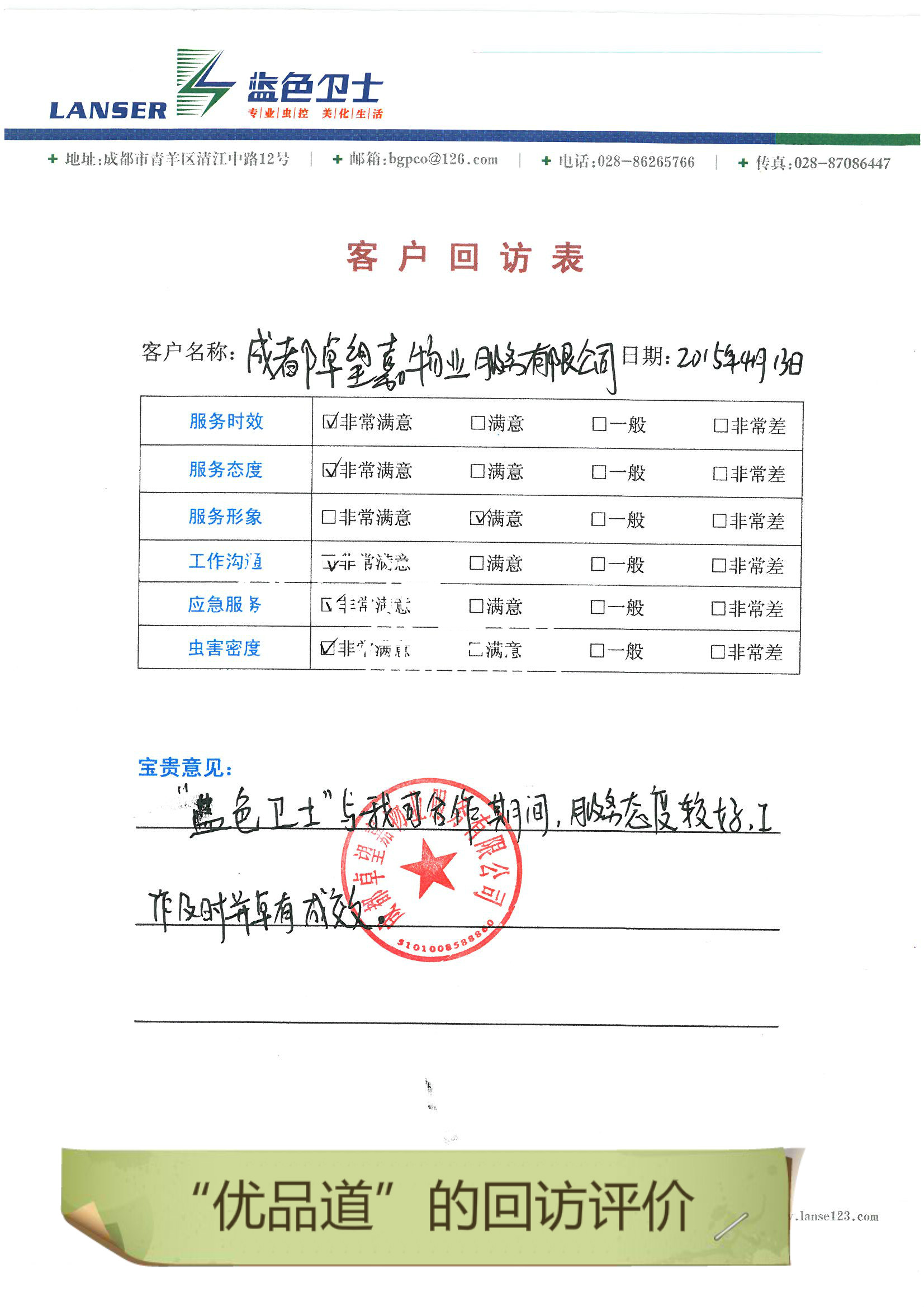 通過(guò)合作,對(duì)四害的消殺控制的很好,符合項(xiàng)目品質(zhì)要求!